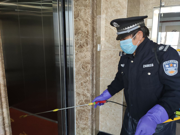 電梯里貼上了暖心的抽紙,門把手也勤消毒做到重點(diǎn)防范。