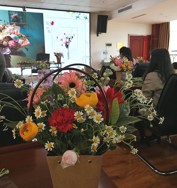 活動(dòng)特邀花藝講師進(jìn)行講解示范,在介紹了插花的造型要素和技巧手法后,講師通過現(xiàn)場(chǎng)演示,指導(dǎo)大家制作出一簇簇精美的花藝作品。一支支黃玫瑰、紫羅蘭、洋甘菊......經(jīng)過女同胞們的巧手修剪、色彩搭配,構(gòu)思細(xì)致地置入花籃,變的錯(cuò)落有致、賞心悅目,也寄托了大家對(duì)美的理解和對(duì)幸福的感悟。