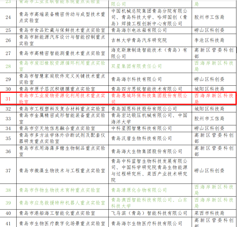 青島市重點(diǎn)實(shí)驗(yàn)室是開展前沿創(chuàng)新領(lǐng)域工作的重要支撐,更為青島市高質(zhì)量發(fā)展保駕護(hù)航。近年來,青島惠城環(huán)??萍技瘓F(tuán)股份有限公司始終以“綠水青山就是金山銀山”為發(fā)展理念,在工業(yè)“三廢”資源循環(huán)利用技術(shù)創(chuàng)新及工業(yè)應(yīng)用等方面積累了豐富的成功經(jīng)驗(yàn),作為環(huán)保型高新技術(shù)企業(yè),公司將充分發(fā)揮行業(yè)和技術(shù)領(lǐng)先優(yōu)勢,面向國家戰(zhàn)略科技發(fā)展技術(shù)需求,開展應(yīng)用基礎(chǔ)研究及競爭前沿技術(shù)研究,為提升產(chǎn)業(yè)核心競爭力、推動(dòng)行業(yè)技術(shù)進(jìn)步提供支撐。