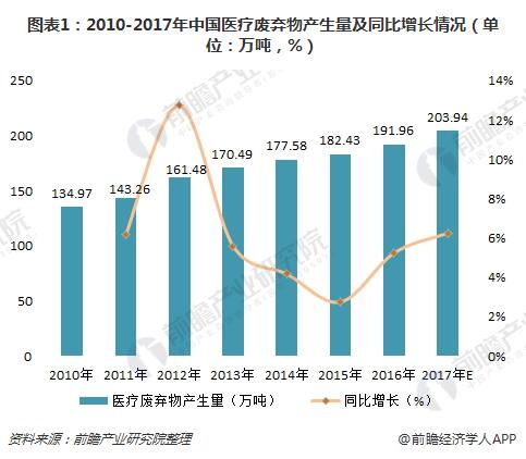 近年來,伴隨著醫(yī)學技術進步及人民生活水平、健康狀況的提高,臨床上大量使用一次性醫(yī)療衛(wèi)生用品,醫(yī)療廢棄物的產(chǎn)生量大幅提升。據(jù)前瞻產(chǎn)業(yè)研究院測算,2016年,我國醫(yī)療廢棄物產(chǎn)生量已達到191.96萬噸,同比增長5.22%。