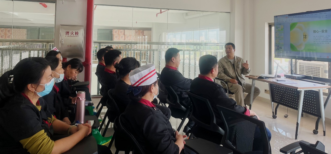 隨后,HSE管理部安全員朱宏杰于職工書屋對廚房工作人員進行安全教育,從廚房危險源辨識、事故預防、設備操作等方面詳細地進行講解,他強調(diào):“大家一定要重視電、火、器具的使用安全,注意安全是對自己負責,也是對他人負責。在廚房無論進行什么工作都需要嚴肅認真,思想集中,比如在油鍋加熱過程中不可離開,在斬切食物時不得與他人交談,養(yǎng)成良好的習慣,確保自己和他人的安全。”